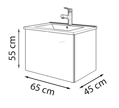 - Širina: Ta kopalniški blok v širini 65 cm, kar ga naredi idealnega za manjše kopalnice, hkrati pa ohranja optimalno funkcionalnost.